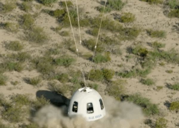 北京时间21点22分,贝索斯与3名队友顺利返回地面。落地后,坐在太空舱窗边的贝索斯仍旧兴奋的对着窗外的工作人员手舞足蹈。在打开舱门的那一刻,贝索斯第一个冲了出来,并和接应他的工作人员们击掌、拥抱。随后,他的弟弟马克·贝索斯(Mark Bezos)、唯一一位女队员沃利·芬克(Wally Funk)和18岁的奥利弗·戴曼(Oliver Daemen)也陆续走了出来。