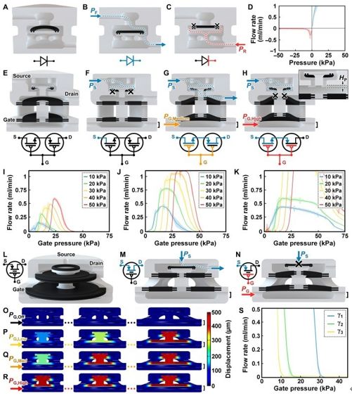 这些晶体管中的每一个都采用了特殊的设计,能够按需打开并让空气流入对应的机械手指,以响应低、中、高三档不同的气压。
