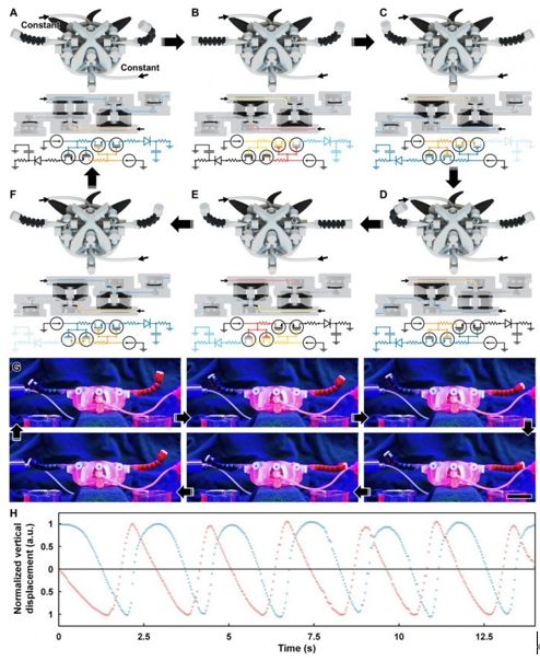 ▲研究配图 - 5:基于非周期性流体输入的预编程软机械手演示