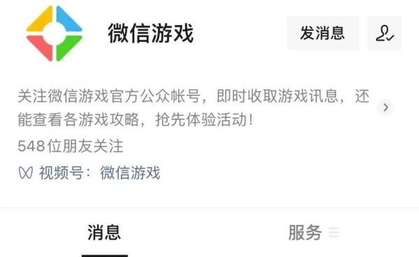 凡是通过微信游戏中心下载过游戏的人,往往会自动关注“微信游戏”公众号。这是一个服务号而非订阅号,所以会出现在微信会话当中(而不是出现在订阅号信息流当中)。你也可以选择取消关注,但是很多人没有这样做,正如他们不会选择对“微信团队”“微信卡包”“微信红包”等官方服务号的关注。