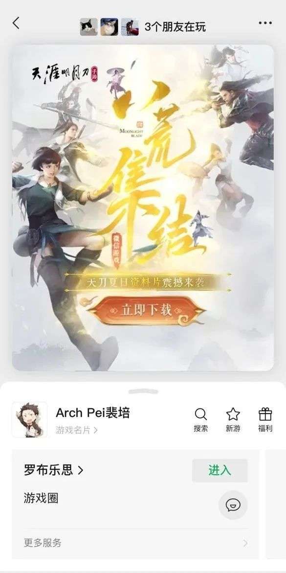 微信游戏中心会不定期地给用户推送“带游戏素材的小红点”。在重点游戏首发时,或许大部分用户会收到一模一样的小红点;在普通时间段,则会根据用户画像(主要是此前玩过或搜索过的游戏记录)进行千人千面的推送。点击小红点之后,则会打开相关游戏的页面,并显示有哪些好友玩过。