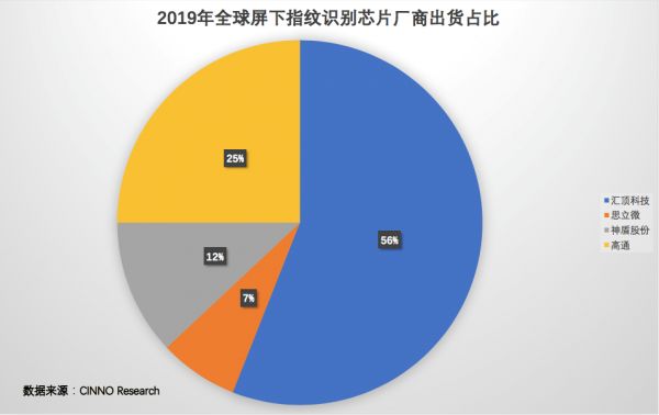 根据CINNO Research数据,2019年,汇顶科技、高通、神盾股份、思立微在全球屏下指纹芯片市场上的出货量占比分别为56%、25%、12%、7%。