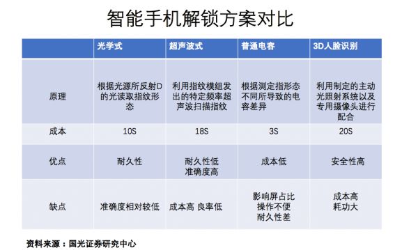 毕竟,在当时,这三种技术路线中,面部识别成本较高,超声波解锁也有解锁良率低、成本高、技术不成熟的痛点。而光学指纹别识别技术则发展较久,技术成熟,更有保障。