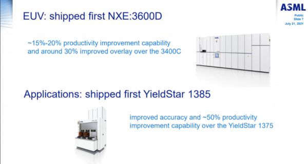 中短期来看,阿斯麦通过提高产品性能,有望吃一波升级红利,如二季度阿斯麦开始出货更先进的EUVNXE:3600D,该款产品比上一代3400C提高了15%-20%的生产效率。同时,更先进的量测设备YieldStar1385开始出货,该产品比上一代YieldStar1375生产效率提升50%。