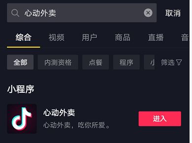 “心动外卖”显示目前处于内测阶段 图片来源:抖音APP截图