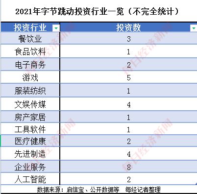 近两年来,字节跳动频频开拓进军游戏、教育、医疗、机器人、汽车等多个领域。每经记者据公开数据不完全统计发现,2020年至今,字节跳动投资高达76起,其中,2021年至今的7个月,字节跳动投资超30起,涵盖餐饮、游戏、文娱、企业服务、教育等多个领域。