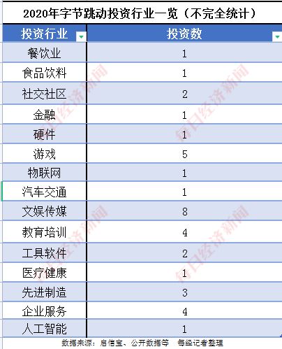不仅是外卖业务。近两年来,字节跳动持续“开疆拓土”,在社交、教育、游戏、音乐、医疗、汽车交通、科技等领域动作频频。2020年至今,字节跳动的投资节奏明显加快。