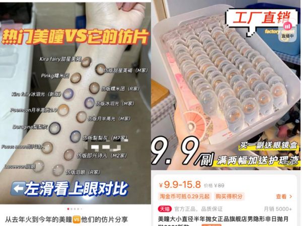 然而,赛道火爆的背后,难掩混乱。国货品牌想从铺天盖地的“瞳代”、低至“地板价”的国外高仿片中趟出一条道来,并非易事。
