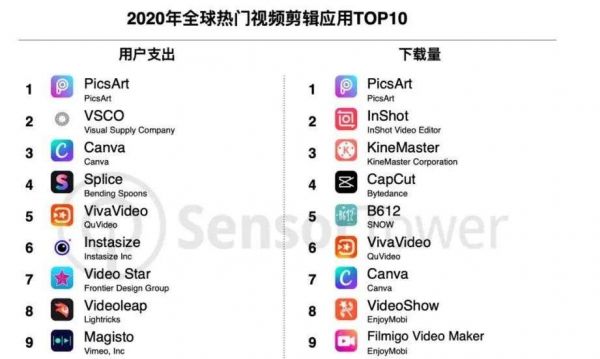 而在国外应用市场剪辑软件排行榜里,PicsArt向来常居榜首,杭州影笑 InShot也不容小觑。榜单之外,GoPro的Quik,Adobe的Rush等等也都相继发力。