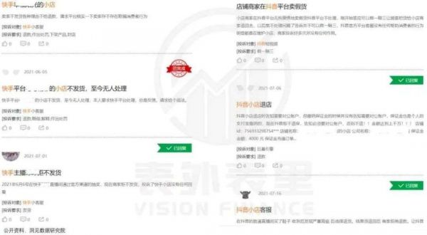 比如,在黑猫投诉平台上,出现了很多消费者对抖音/快手小店“产品质量差”、“店铺不退款”、“客服不回复”之类的投诉。