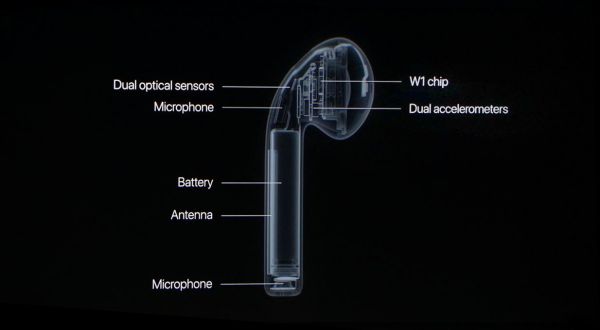 究其原因在于,苹果不仅在AirPods的材料、造型、工艺上下了不少功夫,更为其设计了一款专门的W1芯片,配合双光学传感器、运动加速感应器、语音加速感应器、波束成形麦克风等技术,实现了实时配对、入耳检测、通话背景噪音过滤、低功耗、长续航等功能。(后来W1升级并改名为H1芯片)