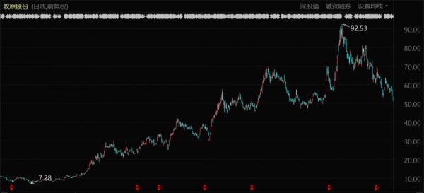 但在“财务造假”的疑云之下,资本市场对这份成绩并不认可。自业绩预告发布后,牧原股价累计下跌超过10个点。在亮眼业绩的对比下,显得相当无力。