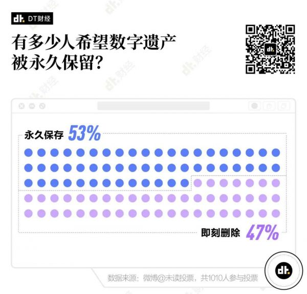 去年,微博 @未读 就“网络遗产”的话题发起了投票,在“网络遗产被永久保存还是即刻删除”的问题投票下,有超过一半的人希望自己的网络遗产被永久保存。