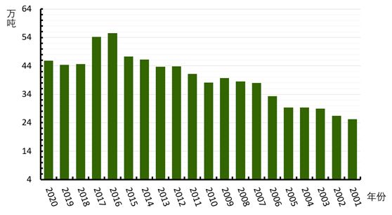 国家统计局显示:2020年我国蜂蜜产量45.81万吨,同比增长3.15%