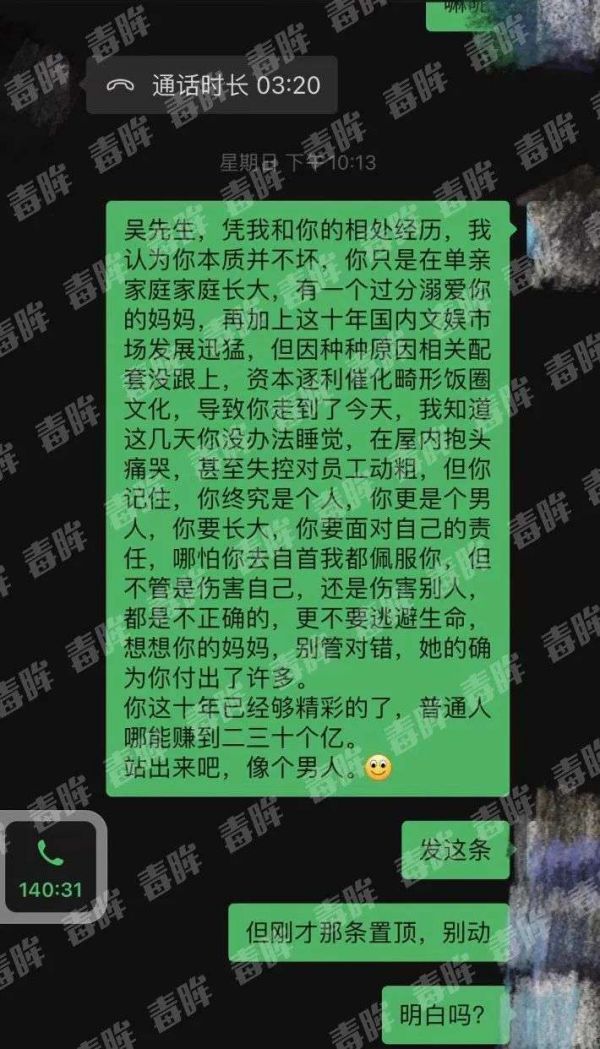 我当时加了那个人的联系方式,她给我发过一些拍的关于吴亦凡的证据。那段时间我不停地安慰她,希望她能好好生活,去报警。但这种事情留存证据很难,我也没办法核实那些证据是不是真的。