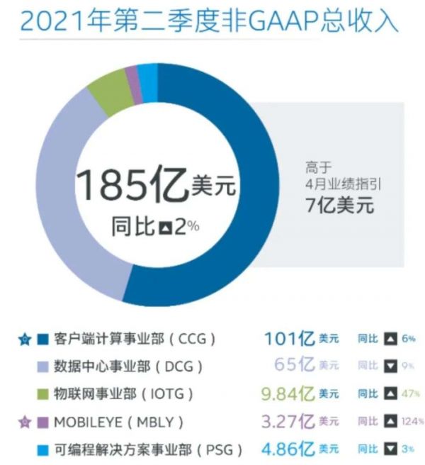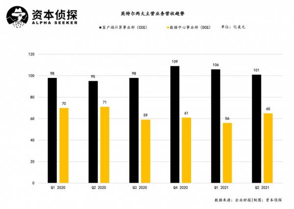 两大主营业务,客户端计算事业部(CCG)和数据中心事业部(DCG)依旧占英特尔总营收近90%份额。