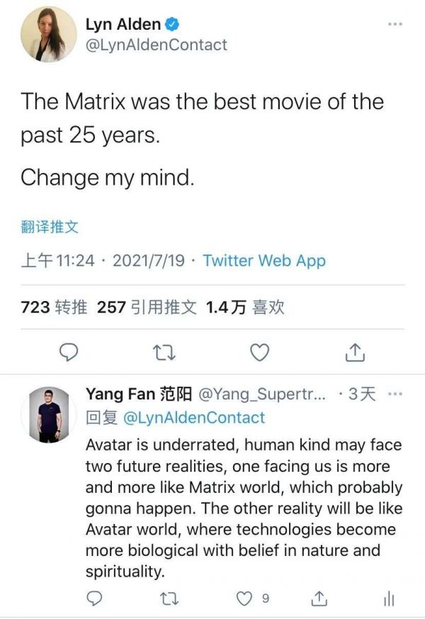 如果人类可以在掌握神一般技术的同时,意识到自己思维的局限和能力的渺小,那人类一定可以创造一个比 The Matrix 和 Avatar 都更好的世界。