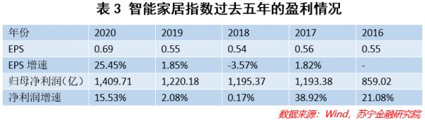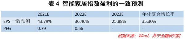 Wind一致预测显示,市场对于智能家居板块未来三年EPS预测的年化复合增长率为35.3%。