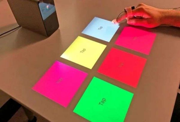 采用AR投影界面的好处是,体验者的手可直接触碰桌面并得到反馈,无需控制按钮或触屏来进行输入,因此体验感更自然,而且可以融合视觉、体感、听觉多重感官反馈。应用场景方面,可用于游戏、娱乐、科研等等。