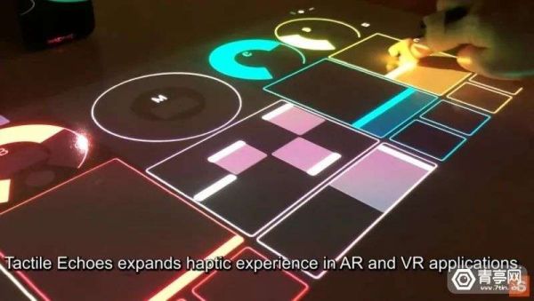 据悉,Tactile Echoes又被科研人员称为“基于手势的多重感官增强系统”,其特点是采用可穿戴式设计,与基于投影的AR界面结合,Echoes基于AR投影,手势追踪通过摄像头,而体感反馈则通过手指上方的压电传感器和制动器来实现。