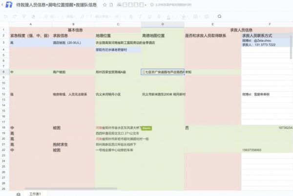 随着时间推移,“救命文档”也从纯求助信息梳理,到资源整合阶段,成为多层的复杂信息平台。在表格中逐渐新增了不同的Sheet,如“官方救援队信息”、“民间救援队信息”、“医疗信息”等,开始进行资源匹配,医生志愿者甚至还开始了线上问诊
