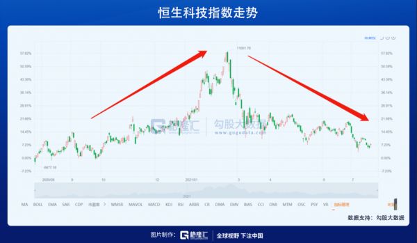 而恒生科技指数之所以暴跌,主要原因就是互联网今年遭遇反垄断,尤其是几大龙头,罚款、终止并购项目,腾讯、阿里、美团、京东等,股价都高位回调近3成,成为拖累指数的“元凶”。