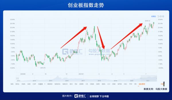 反观创业板指数,尽管同样经历去年下半年的疯涨和2月份的大回调,但现在已经走出了相当牛逼的行情,不断破位,创出新高。