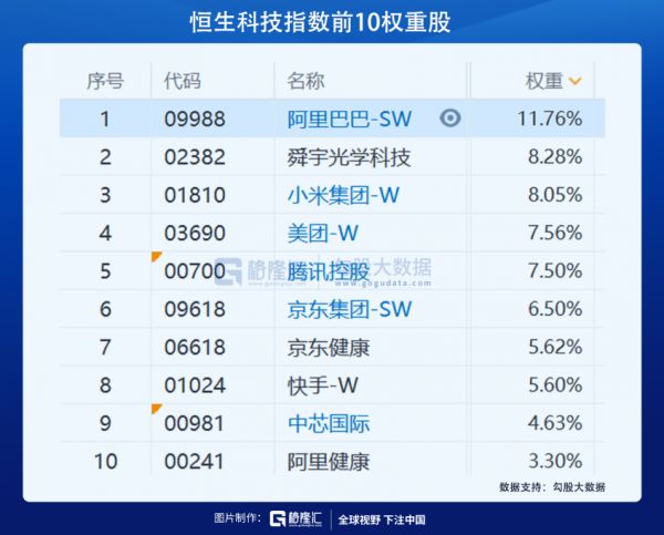 恒生科技指数来了:阿里腾讯美团小米舜宇比重超40%