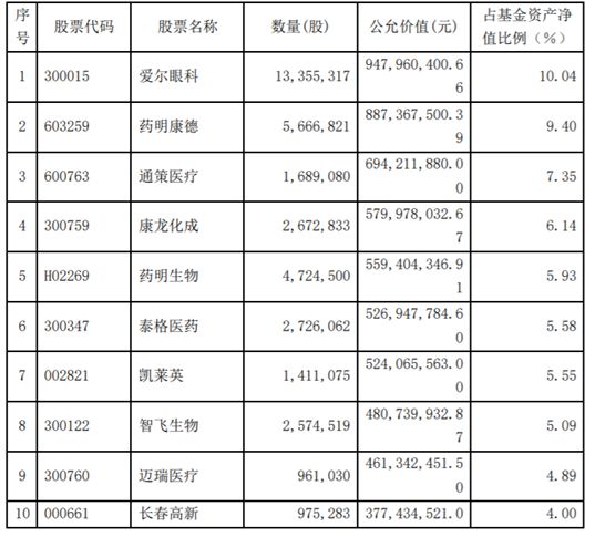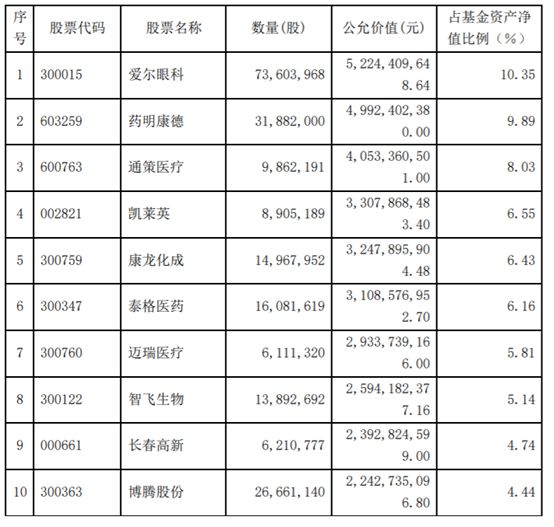 与此同时,受增持股份和股价高涨双重影响,一季度位于第二位的爱尔眼科晋升为该基金第一大重仓股,占基金净值的10.04%,原第十大重仓股通策医疗一跃成为第三大重仓股,占基金净值的7.35%。