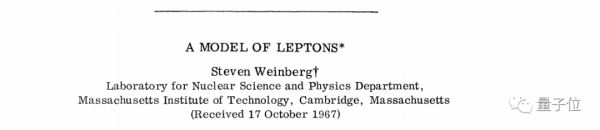 正是MIT任教的那一年,温伯格提出了统一电磁作用和弱相互作用的模型,现在称电弱理论,并在Physical Review Letters上发表,论文只有三页纸。