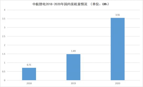 中航锂电2018-2020年国内装机量情况,数据来源于公开数据,连线出行制图