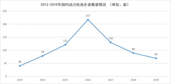 而就在中航锂电陷入易主困局的同时,整个动力电池也经历了由磷酸铁锂到三元锂的路线转变,其伴随的就是行业的一次洗牌。受此影响,国内动力电池行业中企业的数量也从2016年的217家,迅速跌落至2019年的69家。