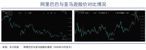 亚马逊有云计算,阿里巴巴也有;亚马逊有物流体系,阿里巴巴也有;亚马逊有国际业务,阿里巴巴还有。亚马逊的业绩在高速增长,阿里的增速也不低。但两家公司的市盈率差了一半还多。