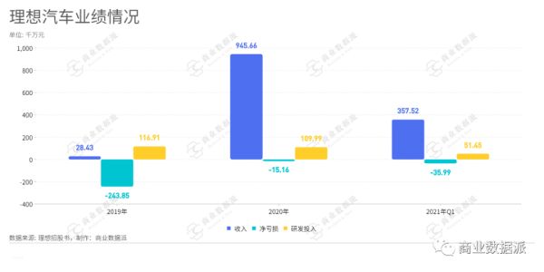 不过,截止2020年12月31日,理想净亏损1.52亿人民币。相较于2018年的15.32亿与2019年的24.39亿来看,亏损大幅收窄。但截止2021年3月31日三个月内,理想净亏损达到3.6亿人民币,已是去年整年亏损的两倍有余。并且,亏损的局面还将长期延续。以目前的盈利能力来看,融资对于新能源汽车的存亡至关重要。