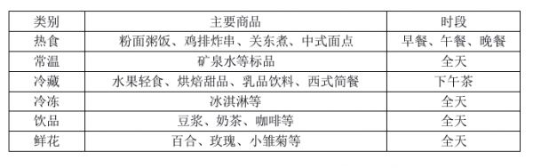 门店SKU约200个,主要包括粉面粥饭、鸡排炸串、关东煮、中式面点等热食商品,其中,部分面食商品提供1次免费续面;常温标品;水果轻食、烘焙甜品、乳品饮料、西式简餐等冷藏商品;冰淇淋等冷冻商品。同时,该门店能现做豆浆、奶茶、咖啡等24种饮品,还售卖百合、玫瑰、小雏菊约12种鲜花商品。