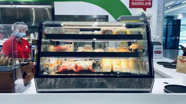 外部鲜食区域,面点、炸串、烤肠等商品的陈列方式与日系便利店相似,摆放低温奶、三明治的冷藏柜可以看做是迷你版的低温柜。