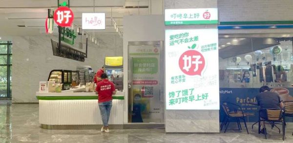 《零售商业财经》走访星创广场1号楼“叮咚早上好”发现,该店位于写字楼一楼内部,毗邻全家便利店,占地面积约30平方米。