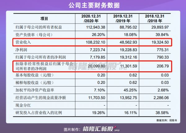 招股书显示,公司2018年-2020年营收和净利润均实现迅猛增长。报告期内,营收分别为1.93亿元、4.86亿元和10.82亿元,净利润分别为206万元、1.13亿元和2.01亿元。