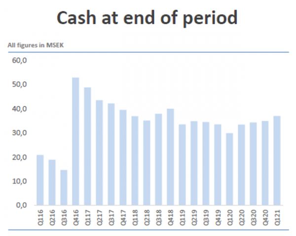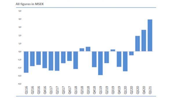 税前利润于2018年的Q2和Q3,以及2019年Q3短期呈正。2020年Q3后开始实现稳定盈利,并持续增长。2021年Q1税前利润达历史最高,约400万ESK;EBITDA约440万ESK;OPEX为1040万ESK(2020年Q1为1080万ESK),因股票期权分配项目,人事费用略有增加。