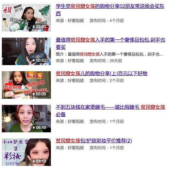 最近两三年,“贫民窟女孩”成为一个网络流行语:在买不起一些化妆品、服装、偶像演唱会门票或其他想要的东西,或者单纯觉得自己没钱消费时,她们常常发出感叹,自嘲为“贫民窟女孩”;一些微博博主和视频up主们也打着“贫民窟女孩也用得起”的旗号推荐各类平价护肤品和生活用品。显而易见的是,这里的“贫民窟”不指代某个真实的贫民窟,也不一定意味着真正匮乏的物质生活,而仅仅是一个化约为“穷”的自嘲之语。所以,虽然“贫民窟女孩”(以及“贫民窟男孩”)这类语汇被广泛使用,但它与现实存在的真正意义上的贫民窟毫无关联,甚至没人会因此联想到乃至去谈论真实贫民窟中的女孩男孩们。