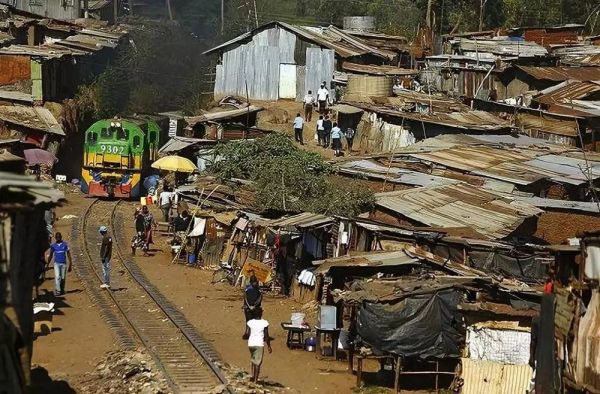 肯尼亚首都内罗毕,一辆火车驶过基贝拉(Kibera)