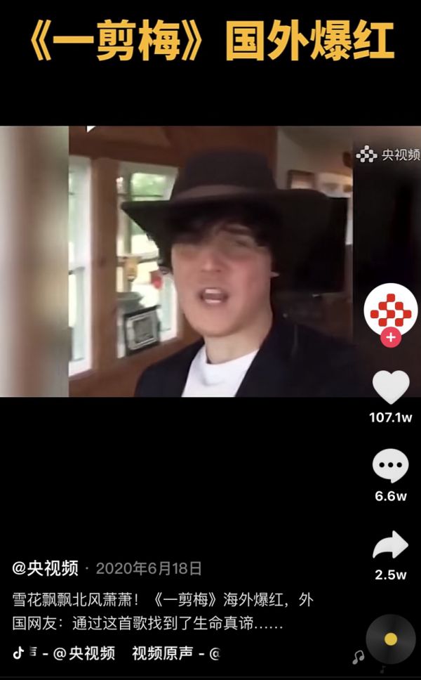 这首歌还通过海外版抖音TikTok爆红海外,“xue hua piao paio”也成为了热门标签。#一剪梅欧美爆红#的话题在抖音上也有超过9500万的播放量。在发布37年后,这首歌能凭借“雪花飘飘,北风萧萧”的音乐梗迎来第二次爆红,也少不了短视频用户的接梗能力。