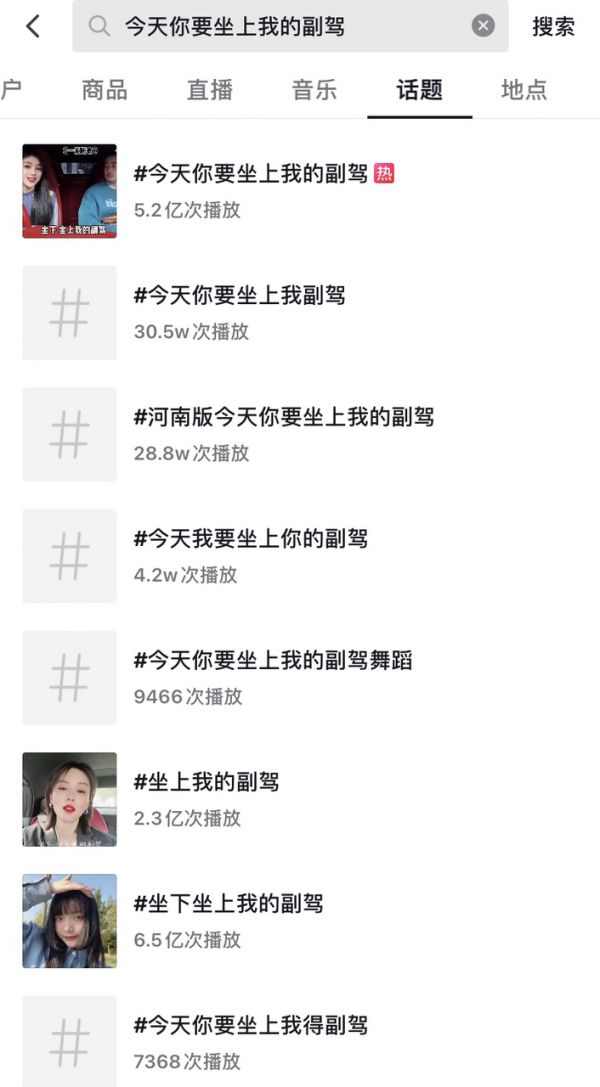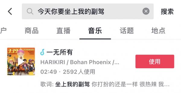 其次,对于歌手来说,音乐梗的影响是一把双刃剑。马思唯的歌曲《一无所有》在抖音上被remix上《今天你要嫁给我》的旋律,以#今天你要坐上我的副驾#的话题,累了5.2亿的播放量,相关话题#坐下坐上我的副驾#也有超过6.5亿的播放量。如此受到网友们翻拍和翻唱的BGM无疑为马思唯做了一波宣传,他本人吸了一波说唱圈以外的粉。