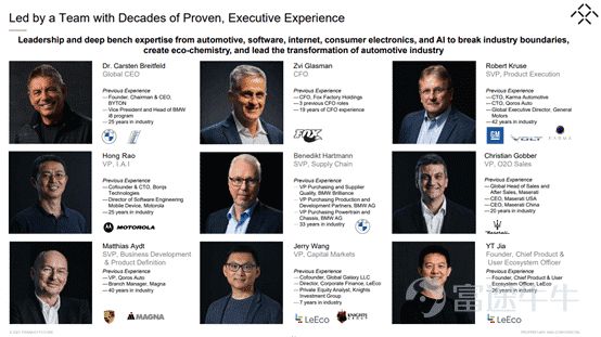 此外,FF还从华为和玛莎拉蒂等企业挖来了众多高管,其中就包括担任FF中国CMO的高孟雄和负责FF中国区域商务拓展的叶青等高管。