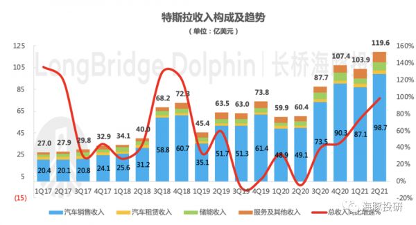 1、业绩全面超预期,且含金量提升。二季度公司营收119.6亿美元,同比接近翻倍;净利润首次站上10亿美元,同比增近10倍,环比增超3倍。同时本季度汽车监管积分贡献降低、比特币从贡献收益到产生减值损失,业绩含金量在提升,公司实力凸显。