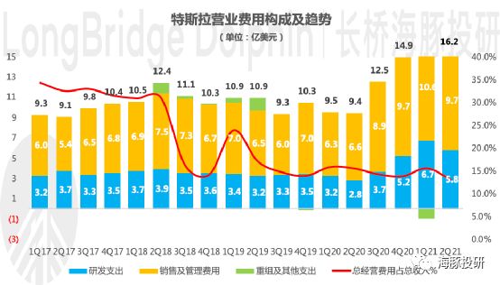 费用控制优秀,费用率达到近几年的最低水平。2021年二季度公司研发费用5.8亿元,占营收的4.8%;销售管理及一般费用9.7亿元,占营收的8.1%,其中CEO绩效奖贡献约1.78亿元;整体经营费用15.72亿美元,占营收13.1%,达到近几年的最低水平;