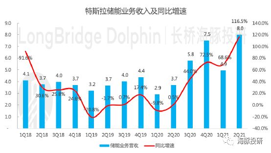 储能业务:特斯拉储能业务包括向住宅、小型商业及大型商业和公用事业级客户出售太阳能系统和储能系统,2021年二季度实现营收8.0亿美元,同比增116%,毛利率2.5%,由负转正。