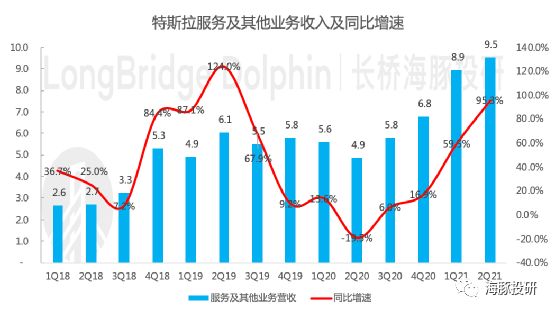 服务业务:2021年二季度特斯拉实现服务业务营收9.5亿美元,同比增95%,毛利率-3.7%,接近转正,是近4年以来的最好水平,主要系二手车的强劲表现和对成本端的控制。