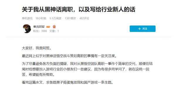 其实这一次的人事调度并不是什么大事,当事人甚至并不是多核心的制作人员,只是众多策划中一员,只因为《黑神话:悟空》的热度被推向了公众的视野。