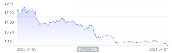 在这份不错的成绩单下,立讯精密自1月中旬以来股价不断下跌,市值从最高的4000多亿元下跌到目前不到2737亿元。歌尔股份也同样出现了股价跳水,从2020年的最高市值1630亿元,跌至目前的1335亿元。